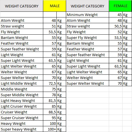 - JUNIOR : 16 – 18 tahun ( kelas tanding; Beginner, Elite, semi pro dan pro )
